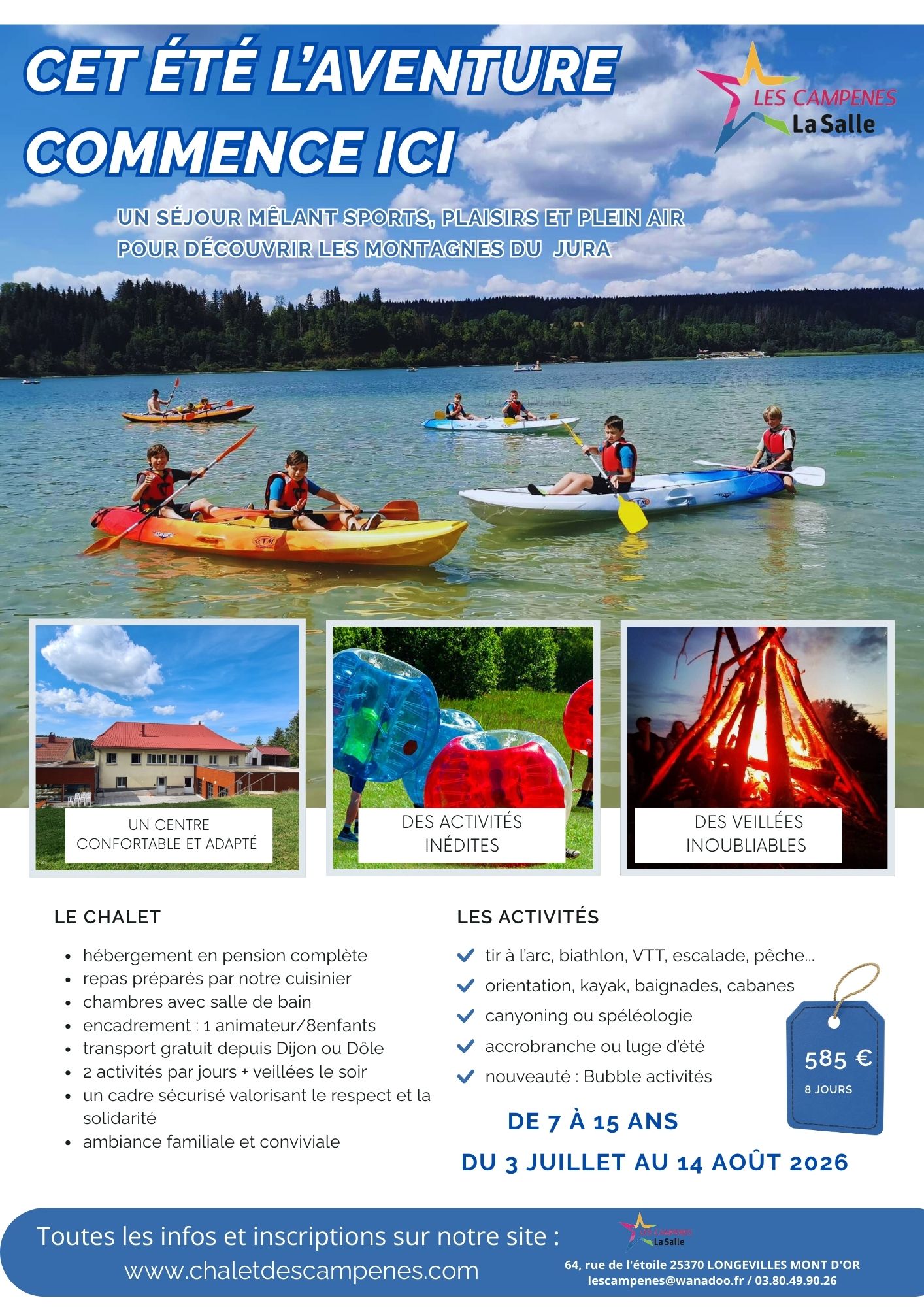 A ce tarif s’ajoute les frais d’adhésion et de dossier de 10,00€ comprenant le passeport montagne ( assurance totale pour toutes les activités outdoor).